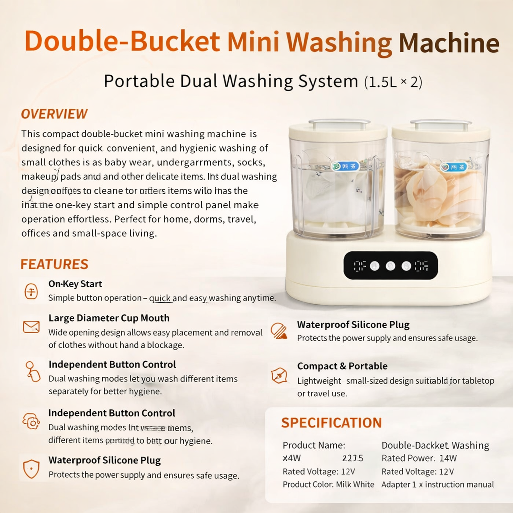 Double-Bucket Mini Washing Machine Ⓢ200.00 SAR