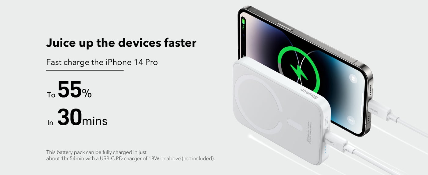 • Ultra-Fast 15W Wireless Charging: Keep your devices fully charged wherever you go with 15W Qi2-certified wireless output, which charges an iPhone 15 Pro from 0 to 50% in 41 minutes. It also features a 30W USB-C port for extensive compatibility.