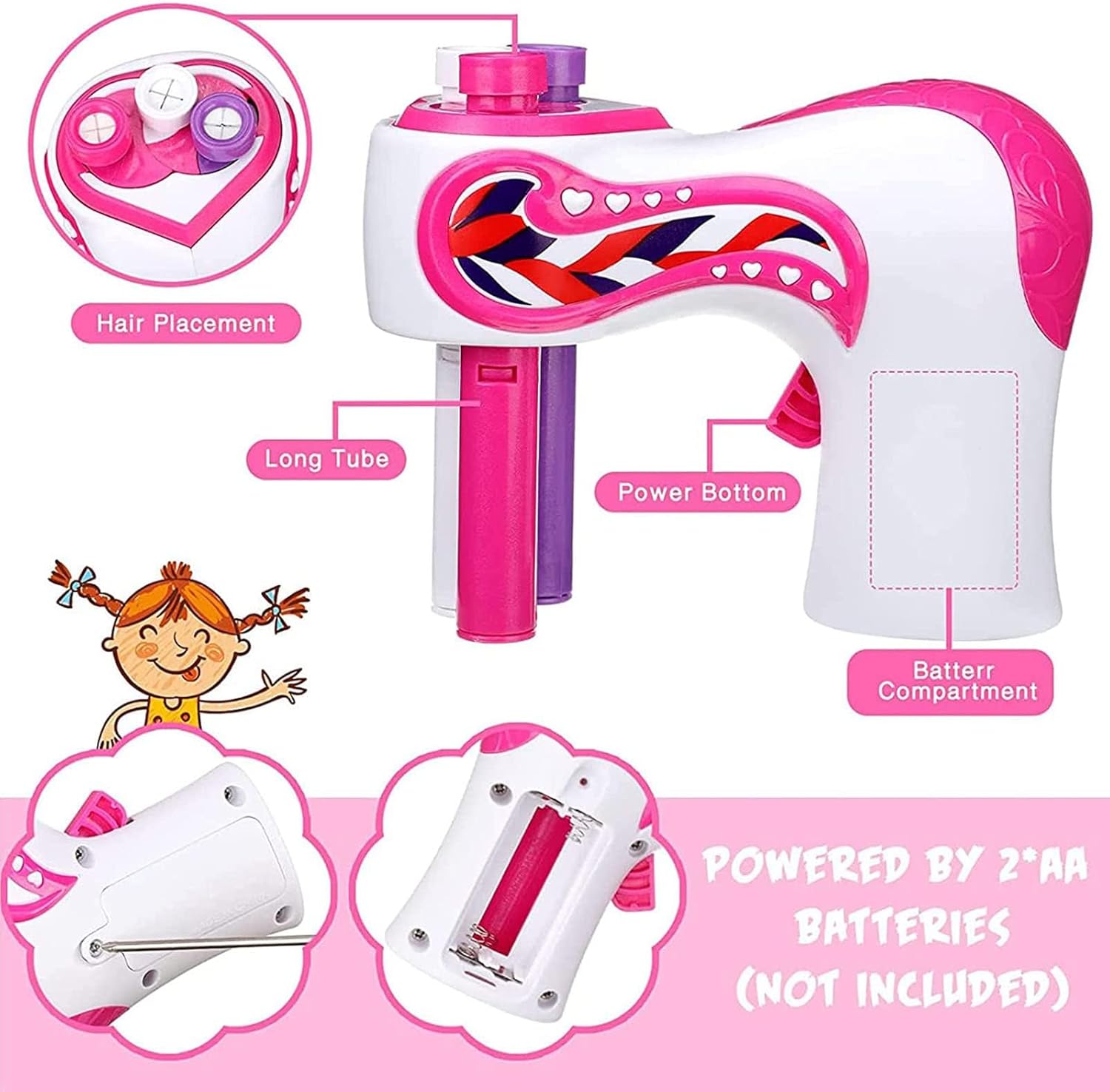 Enjoy DIY Fun: The automatic hair braider machine is simple operation and quick editing which solve your troubles of braiding your kid's hair. Electric rollers can also increase the communication between you, hair braider machine can be used by both adults and children.