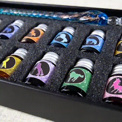 1-12 VIBRANT COLORS INK: 1-12 colors of ink contain gold powder enable your creation more incredible. If you are looking for an ink which is shimmering, highly reflective colors and lightfast, works for illustration, calligraphy pens, dip pens, this ink set would be your best choice. Shake the ink bottle well before use. Pen holder and glass cleaning cup are included.