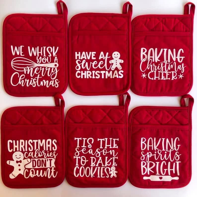 🌟These pot holders make a great gift for everyone on your holiday gift-giving list. Each potholder has a pocket that is perfect to fill with a baking mix and spatula, fresh baked cookies, cookie cutters and sprinkles, a gift card, etc (not included). These make the perfect gift for teachers, neighbors, coworkers, friends or anyone you want to spread some holiday cheer to this Christmas.🌟