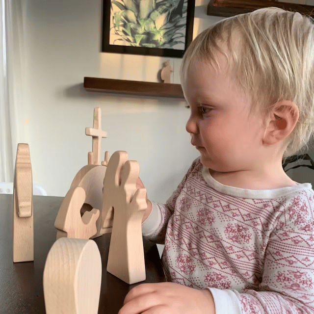 • The gray base is a separate piece, as is the stone that covers the tomb opening. The stone can be placed in any position that you want.