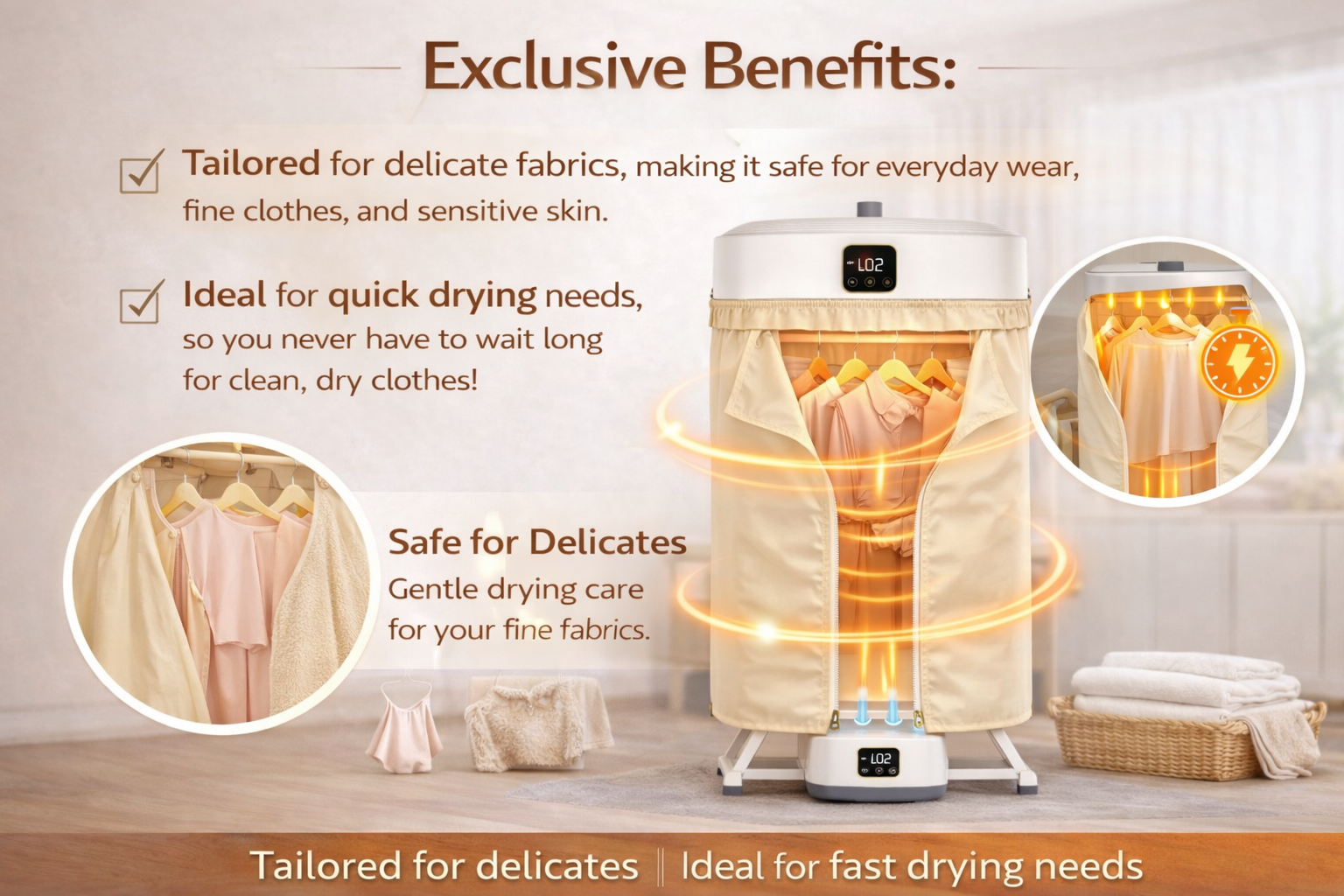 Perfect for home use, delicate fabrics, and quick drying needs! 🏡👚
