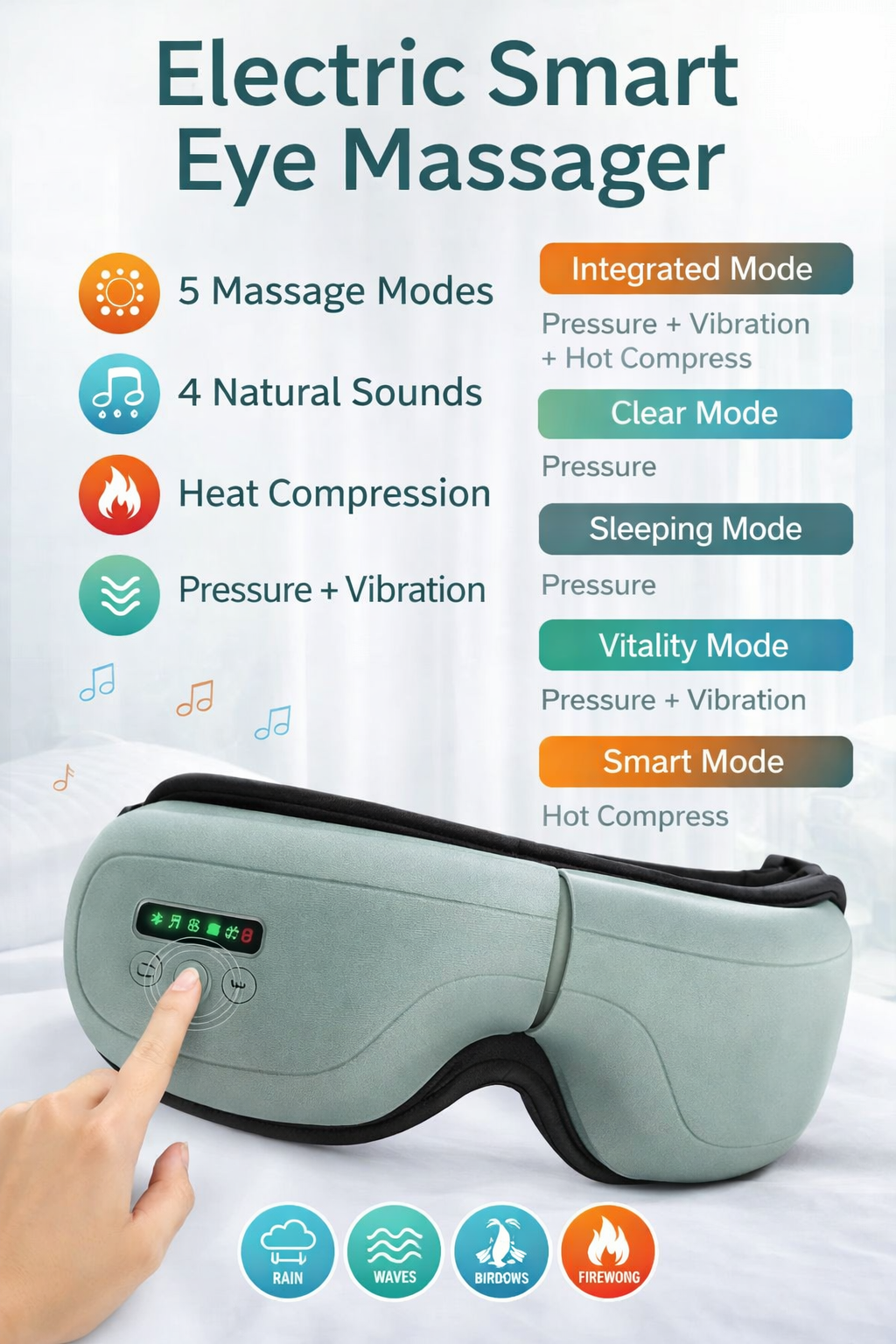 Advanced Eye Massager: SLE eye mask adopts air pressure, vibration, hot compression and music functions, which are combined into 5 different modes to support personalized massage sessions according to your unique eye care needs. We do not recommend customers to use eyeshield eye massage if you have had eye surgery, retina condition, cataracts, glaucoma, etc