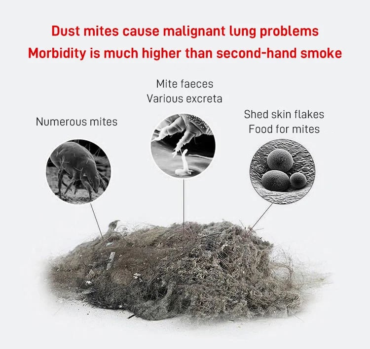 The mattress cleaner machine has 12kpa suction and a 50w motor. Targeted mattress vacuum removes dust and grime from fabrics and deep cleans your bed, pillows, carpet.