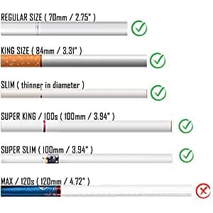 Only fit cigarettes not longer than SUPER KING Size (100mm/ 3.94").