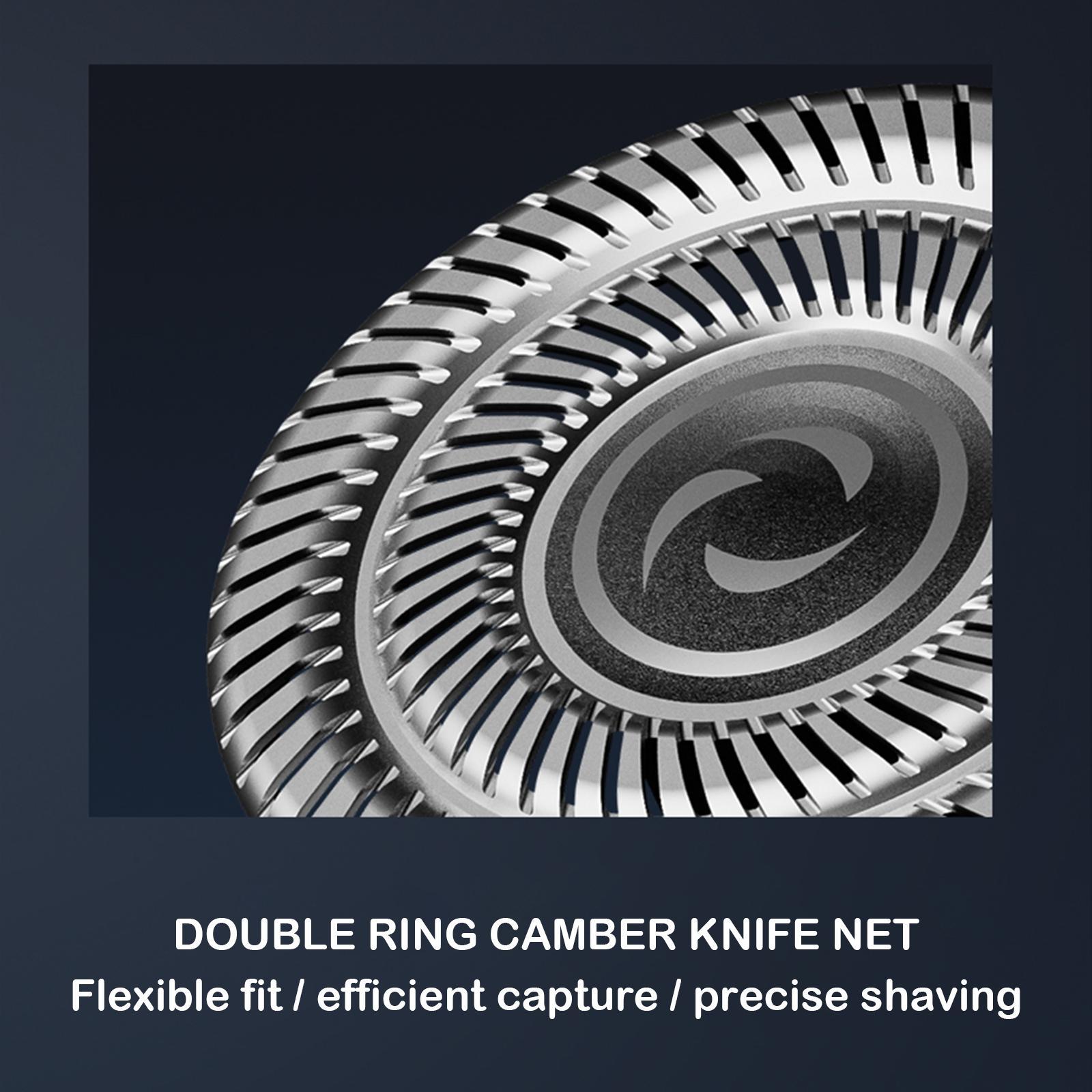 2.Better Shave.15 blade sharp stainless steel turbo whirl blade, specializing in hard beard, 0.1mm thin stainless steel foil, double ring 3D knife net, increase shaving volume, floating arc smooth and stick to the skin, remove hair from the root.