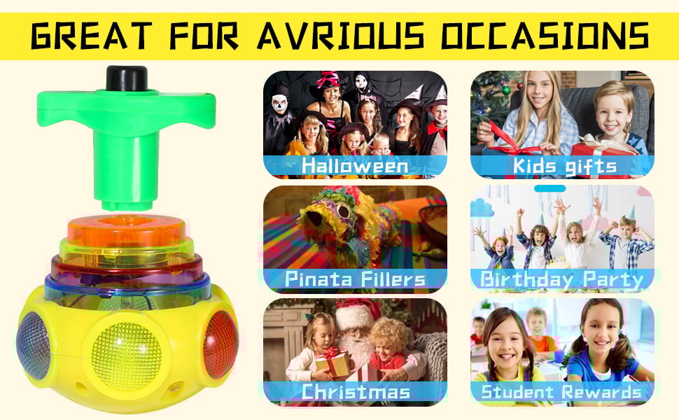 Designed with flashing light and music sound, these spinning toys will definitely catch kids' eyes and bring them loads of fun.