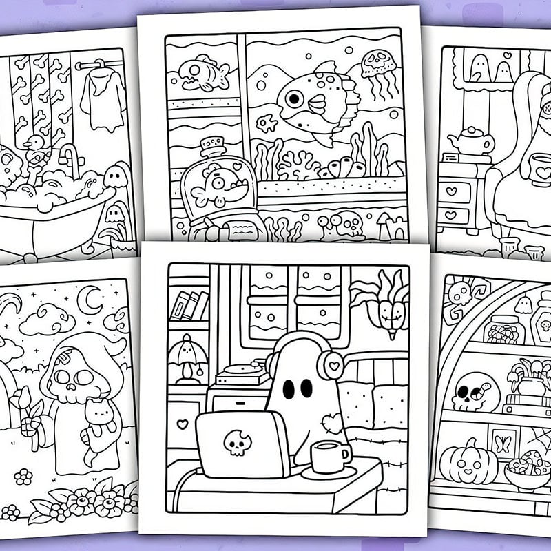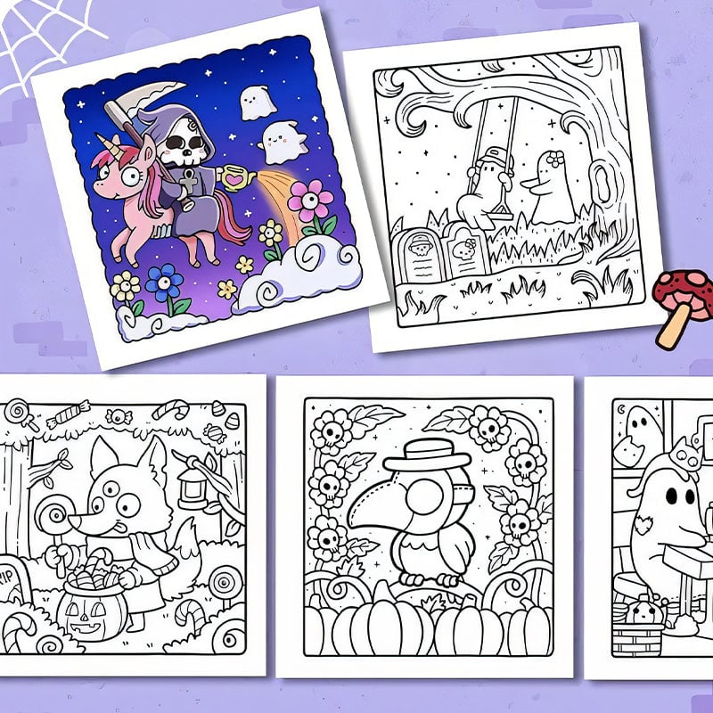 • 2. Stress Relief: Super cute yet spooky coloring pages can relieve stress and relax the mind and body, providing a fun and engaging way to unwind after a long day.