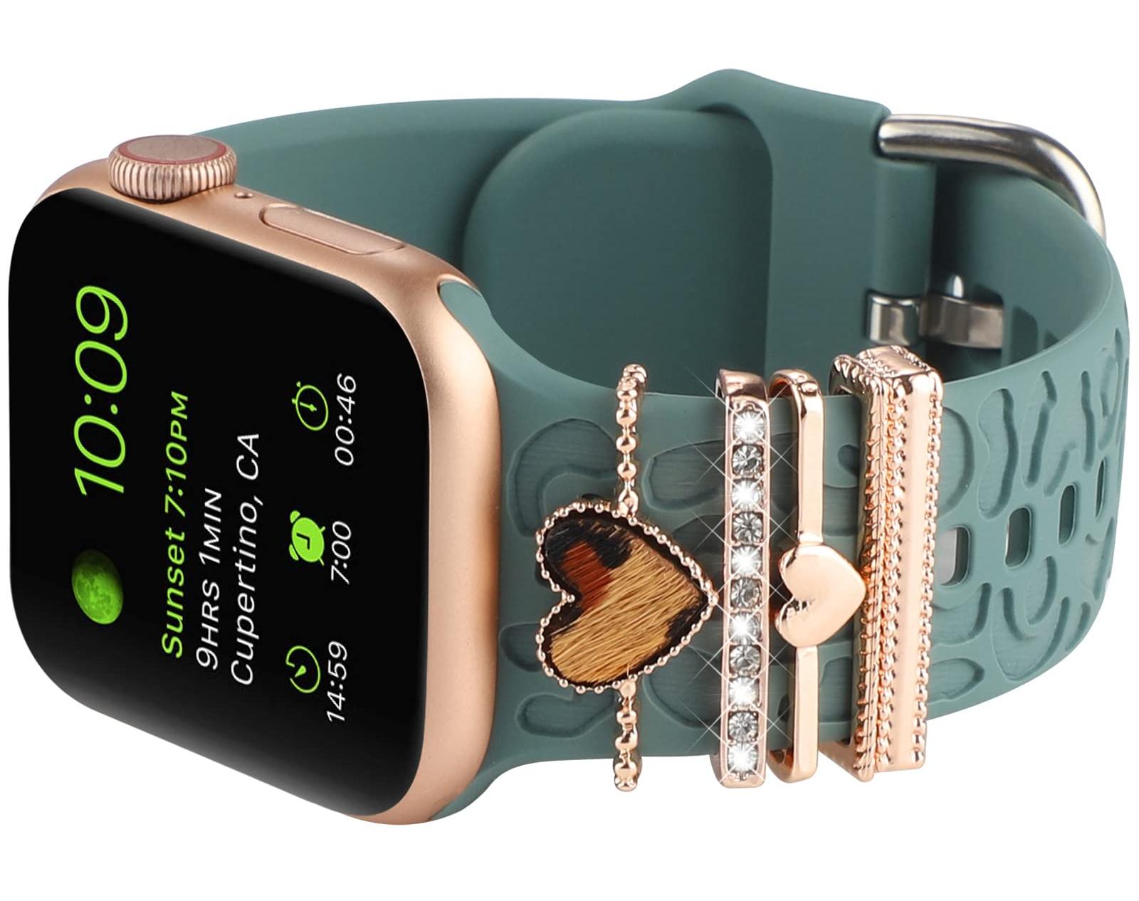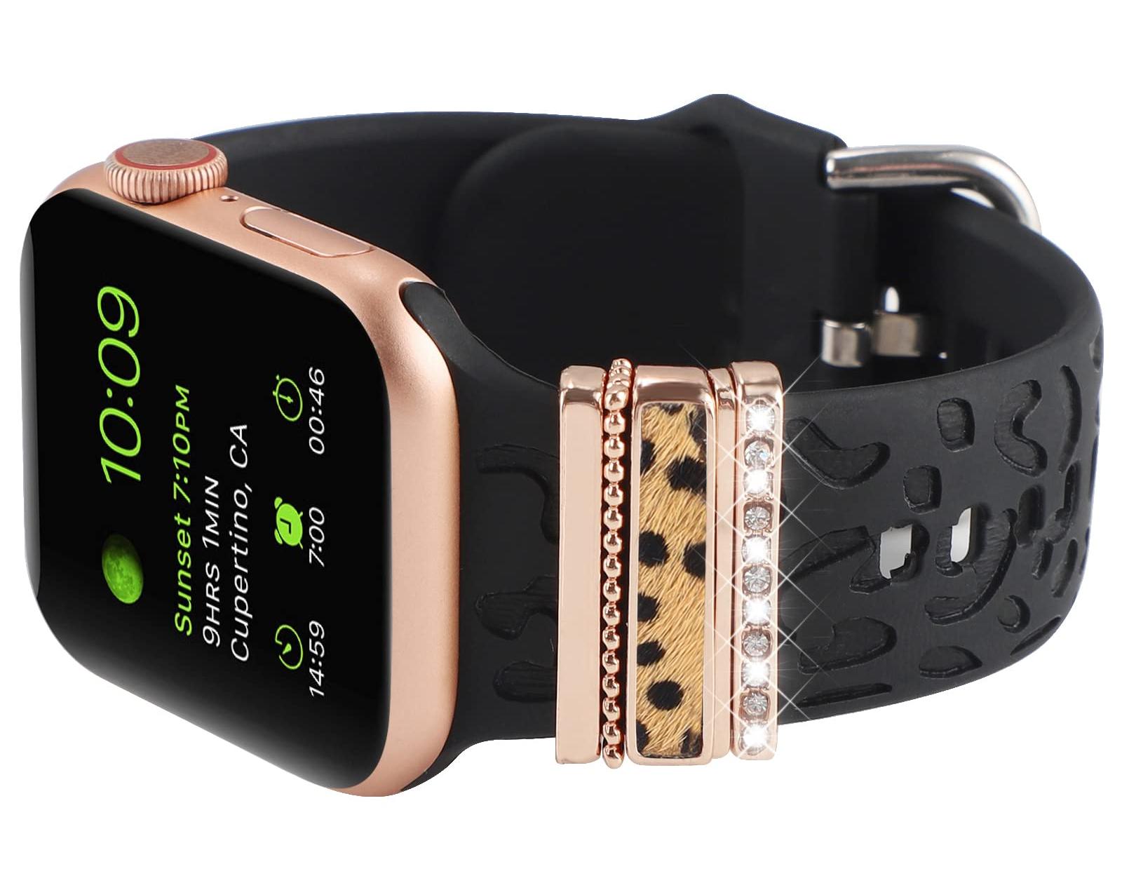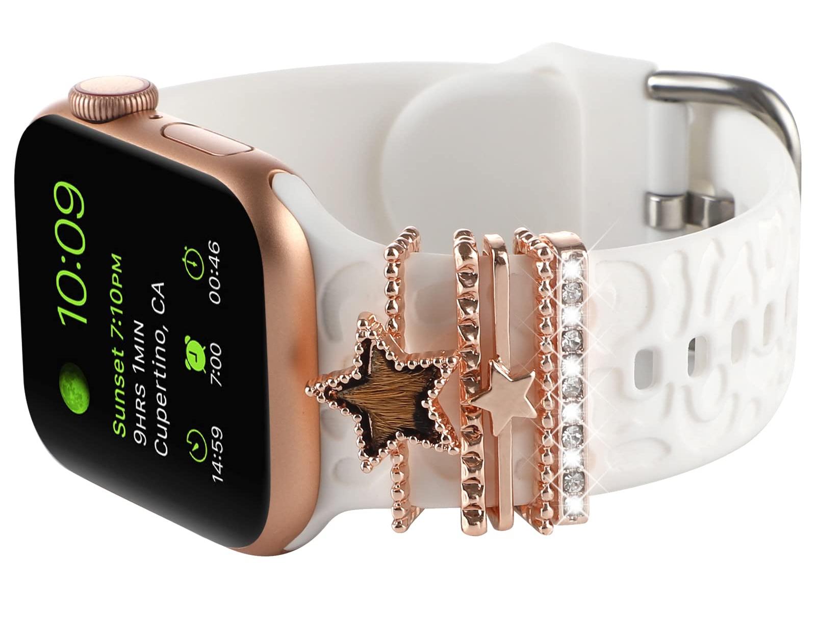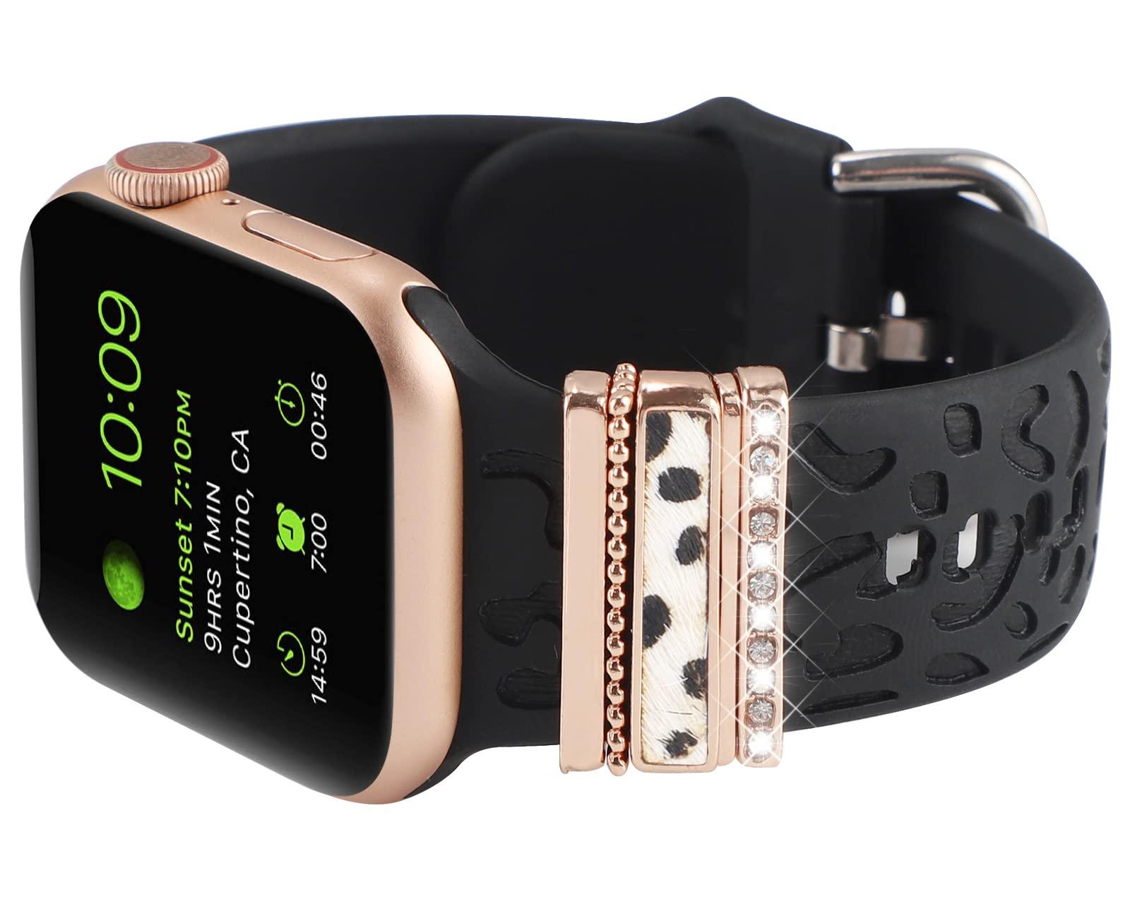 Decorative charms rings loops accessories compatible with apple watch band 45mm 44mm 42mm, 41mm 40mm 38mm iwatch Series 8 7 6 5 4 3 2 1. Also compatible with Samsung Galaxy/Fitbit versa silicone smart watch band.