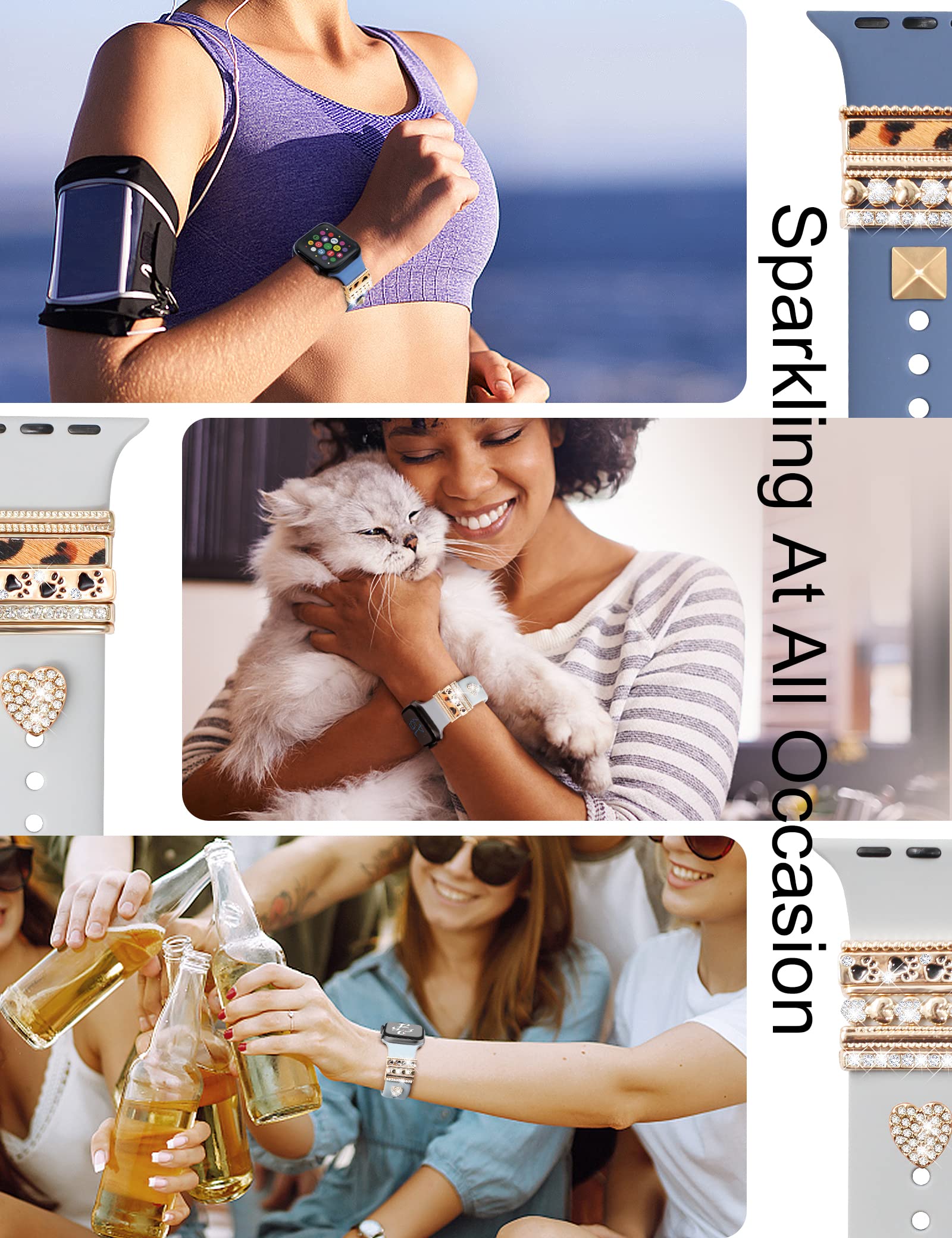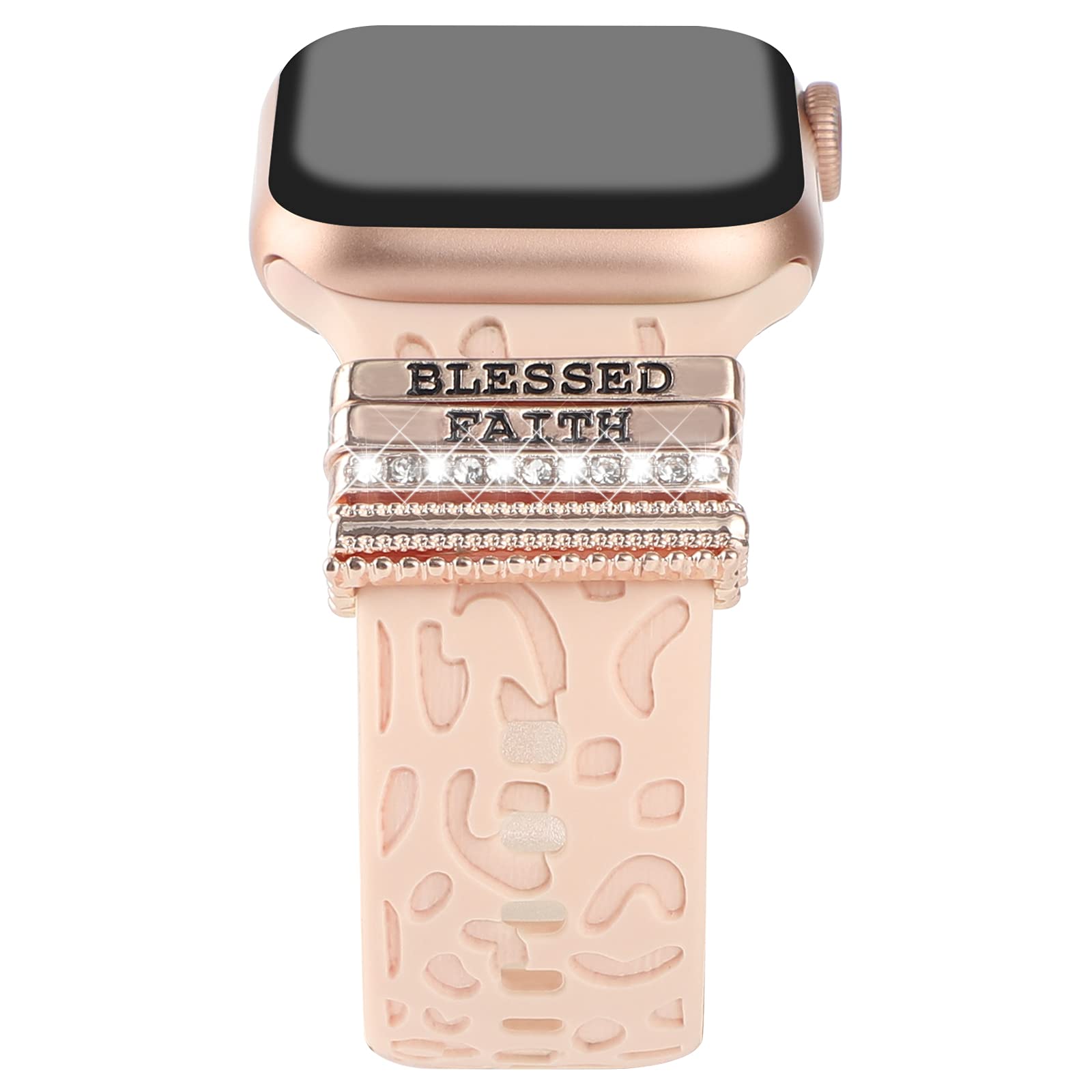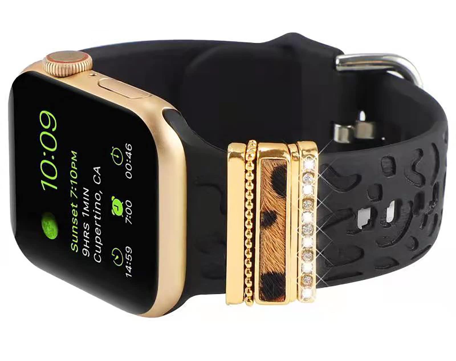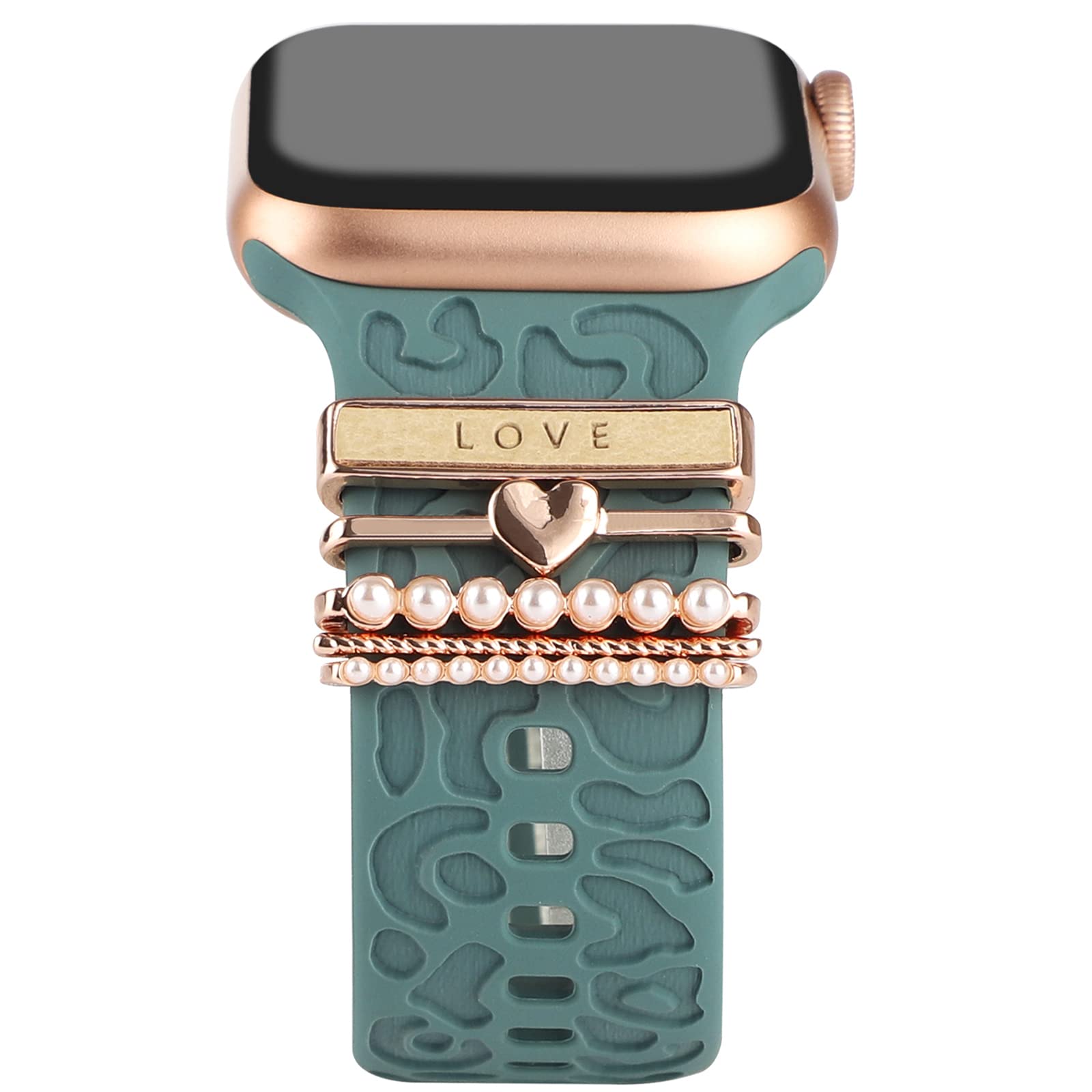 Decorative charms rings loops accessories compatible with apple watch band 45mm 44mm 42mm, 41mm 40mm 38mm iwatch Series 8 7 6 5 4 3 2 1. Also compatible with Samsung Galaxy/Fitbit versa silicone smart watch band.