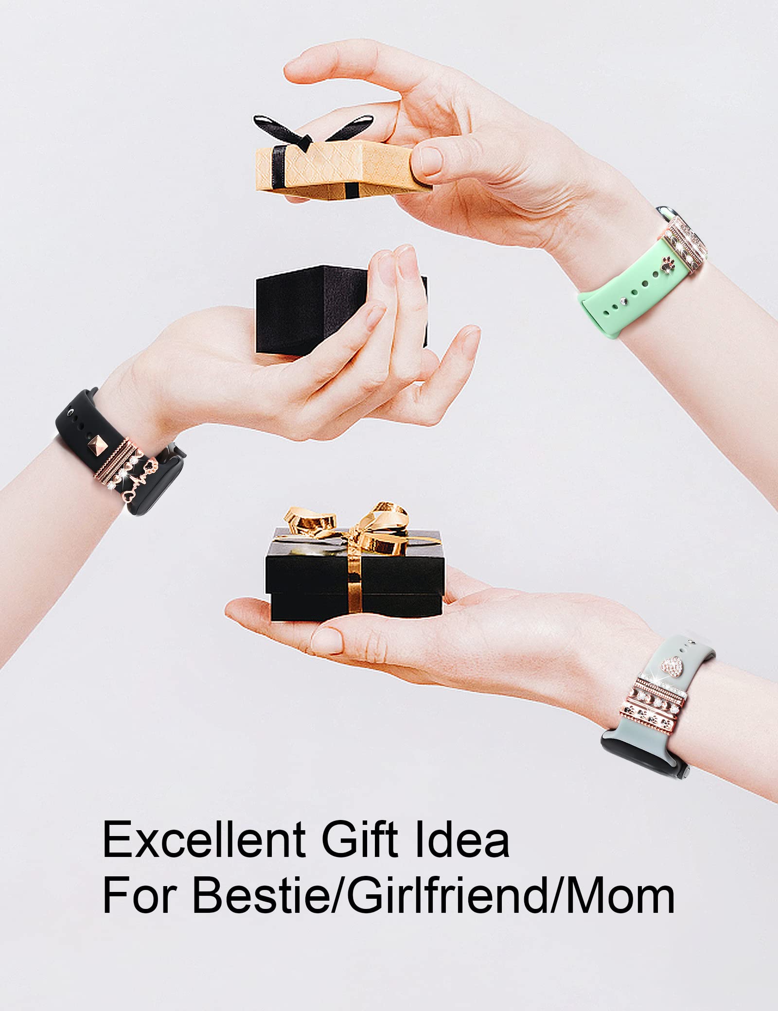 • A Perfect Match for Your Silicone Band: Definitely recommended decorative watch band accessories charms. You could update your watch band a new sparkling look instantly and economically by adding trendy adorable accessories charms. These metal decorative rings loops accessories suitable for silicone watch band.