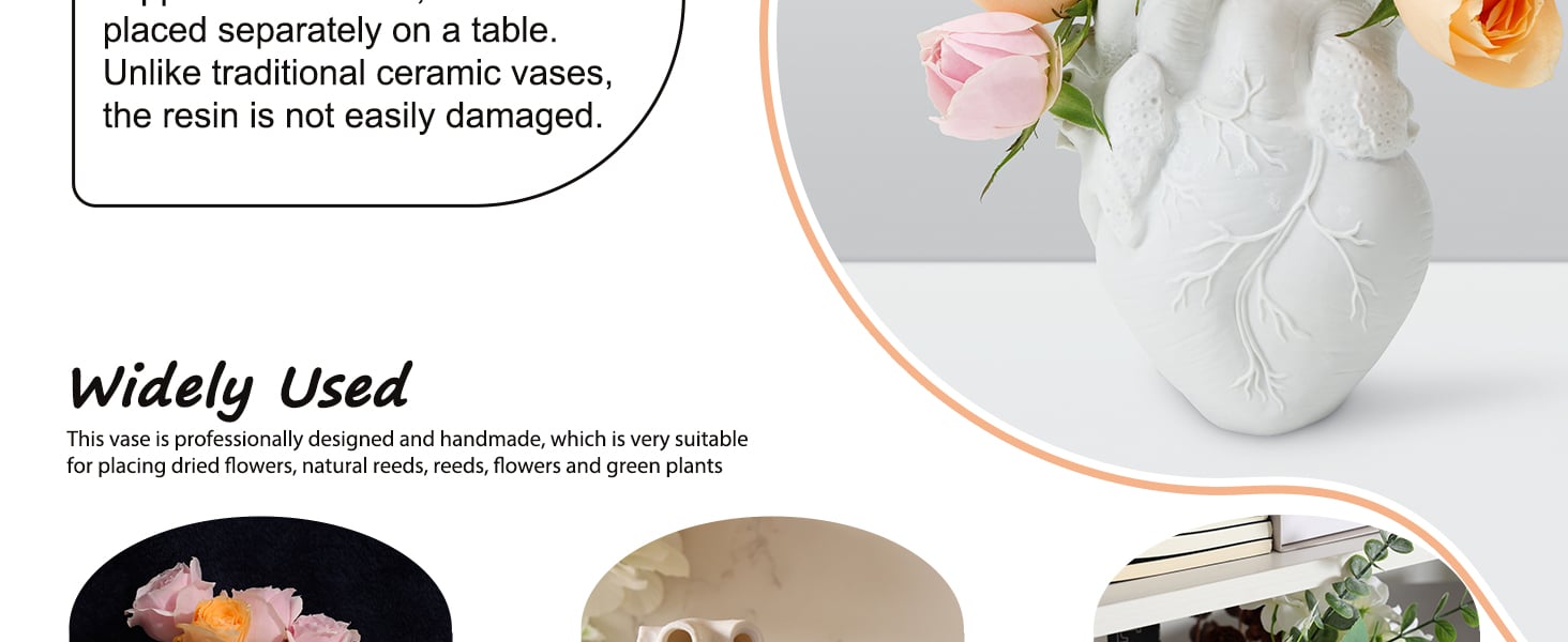 - 【Special Design】White Art Flower Vase with Anatomical Heart Shaped, It Can Perfect Match a Variety of Decor Accents. Beautiful Decoration for Kitchen, Living Room, Office, Restaurant, Dining Room Table Wedding Centerpiece.