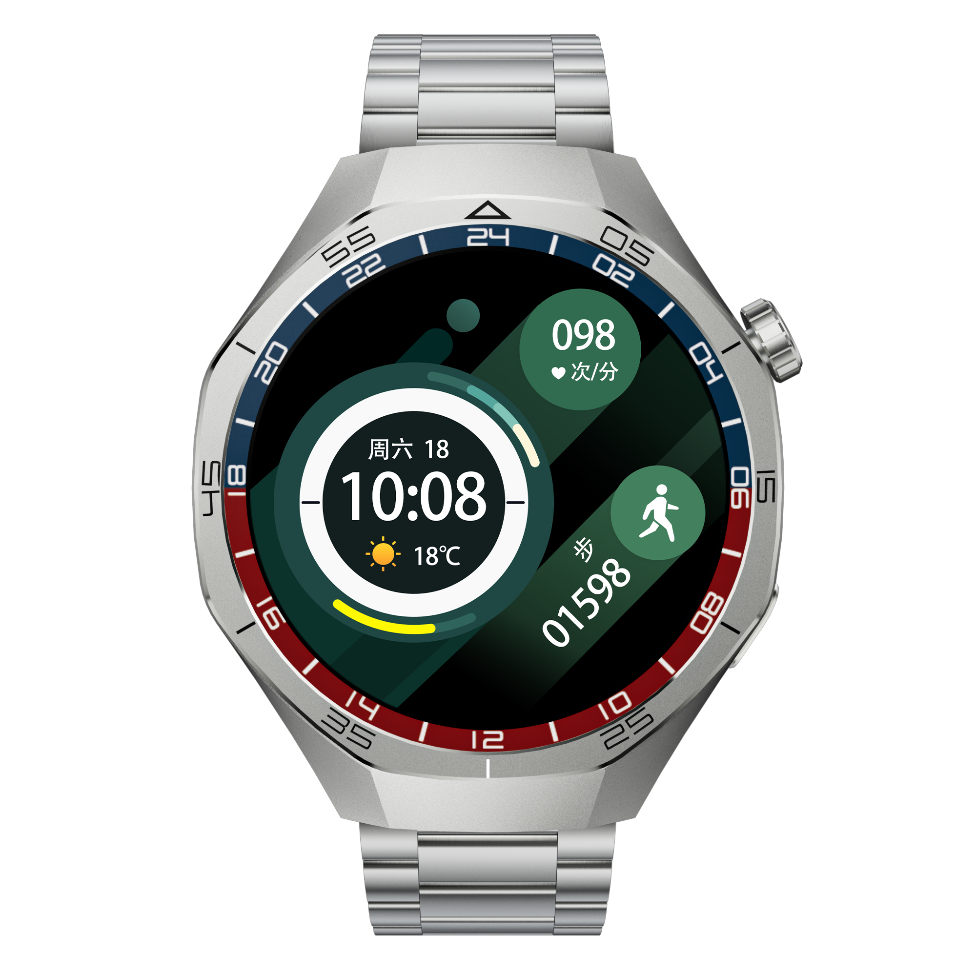 Step Tracking Display — Steps shown directly on the watch face