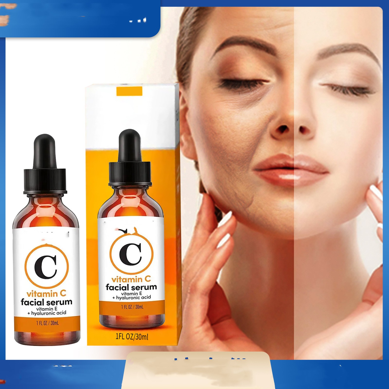Keywords: reducing black spots, uneven pigmentation, wrinklesIngredients: Vitamin C, hyaluronic acid, panthenol