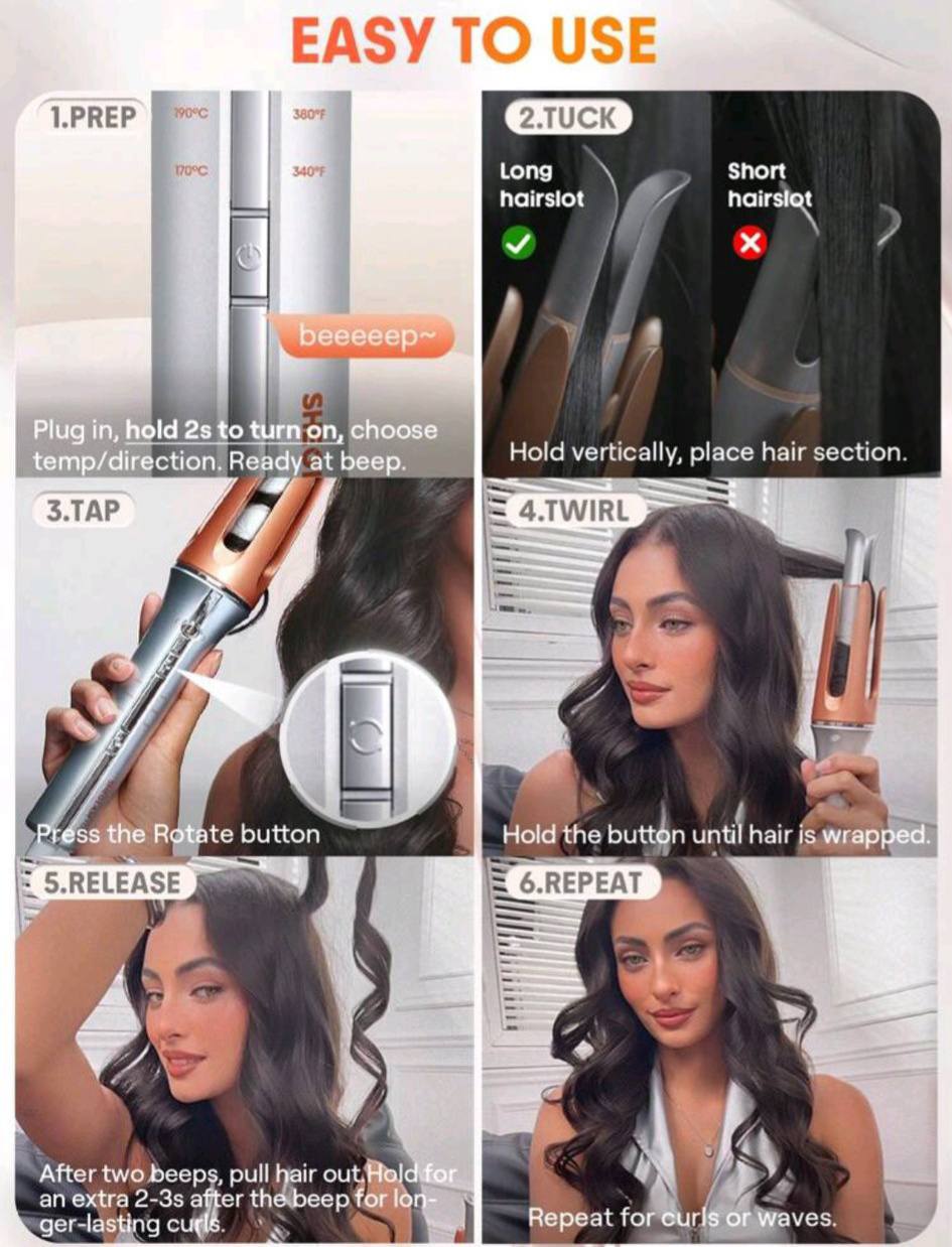 Fast Heating and One-Button Automatic Curling: Achieve beautiful curls in 60 seconds with our automatic curling iron. Simply place your hair, press the button, and let the curling iron automatic hair curler do the work. Fast and easy styling!